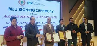 The All India Institute of Ayurveda (AIIA) signed an MoU with the Centre for Ayurveda Education, Innovation & Technology (CAYEIT) to strengthen digital health, research, and technology-driven education in Ayurveda. The MoU was signed by AIIA Director Prof. (Vd.) P. K. Prajapati and CAYEIT Chairman & CEO Prof. Dr. Abhimanyu Kumar, highlighting the integration of clinical excellence with AI and innovation for global application of Ayurveda. With this collaboration, AIIA has now signed 74 National and 20 International MoUs, reinforcing its leadership in Ayurvedic research and education.